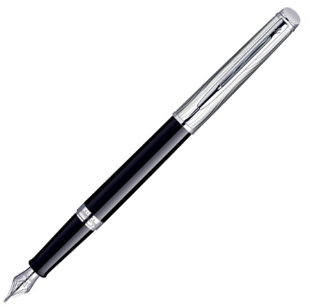 Перьевая ручка Waterman Hemisphere Deluxe Black CT. Перо из нержавеющей стали, корпус - лаковый, насыщенного черного цвета, колпачок - палладиевое покрытие, детали дизайна - никеле-палладиевое покрытие, линия письма - тонкая