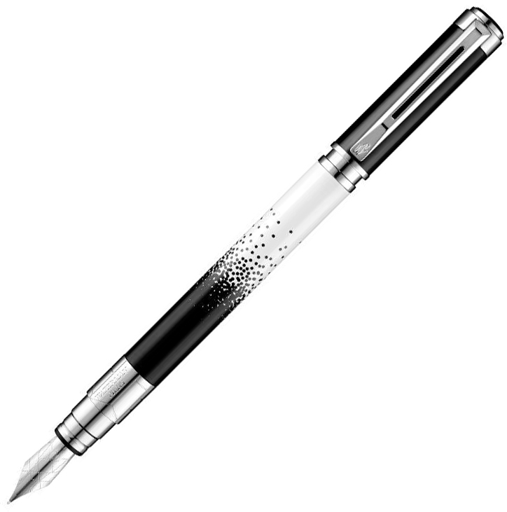 Перьевая ручка Waterman Perspective Ombres & Lumieres CT. Перо из нержавеющей стали, корпус и колпачок - белый лак с черной шелкографией, детали дизайна с никеле-палладиевым покрытием, линия письма - тонкая (F)