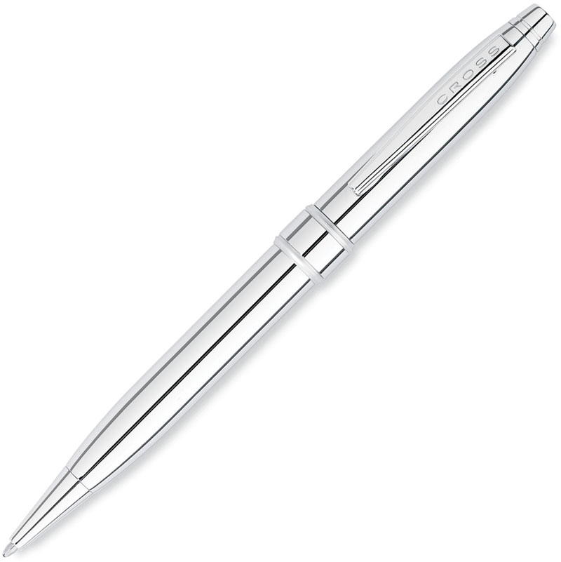 Шариковая ручка Cross Stratford. Корпус - латунь и хромовое покрытие. Отделка и детали дизайна - хром. Цвет - серебристый.