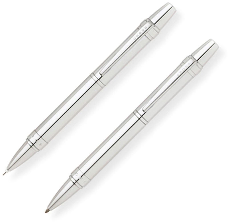 Набор Cross Nile: шариковая ручка и механический карандаш 0.7мм. Корпус - латунь и лакированное покрытие. Отделка и детали дизайна - хром. Цвет - серебристый.