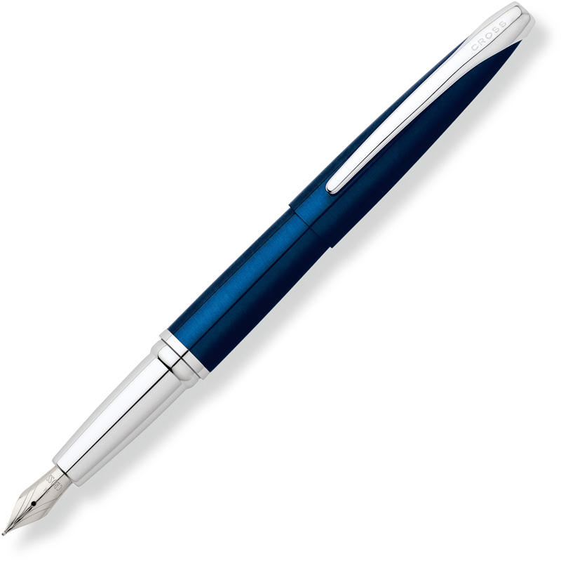 Перьевая ручка Cross ATX. Корпус - латунь и лакированное покрытие. Отделка и детали дизайна - хром. Перо - сталь, тонкое. Цвет - синий.