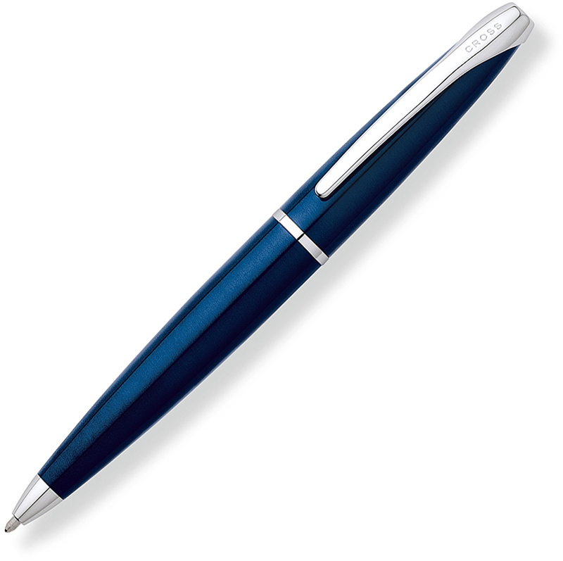 Шариковая ручка Cross ATX. Корпус - латунь и лакированное покрытие. Отделка и детали дизайна - хром. Цвет - синий.