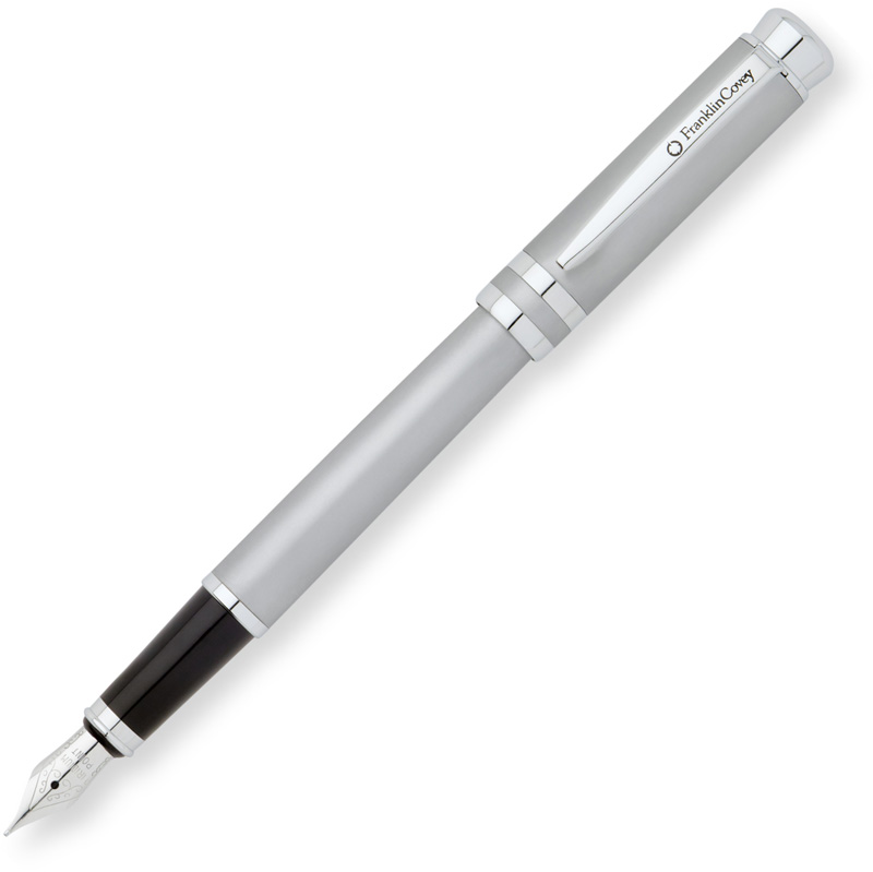 Перьевая ручка FranklinCovey Freemont. Корпус - латунь и матовый лак, отделка и детали дизайна - хром, перо - сталь. Цвет - хромовый. Подарочная коробка. перо сталь