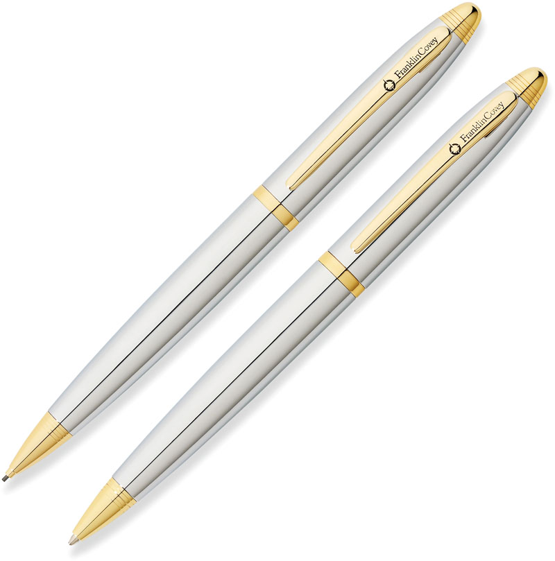 Набор FranklinCovey Lexington: шариковая ручка и карандаш 0.9мм. Цвет - хромовый с золотистой отделк