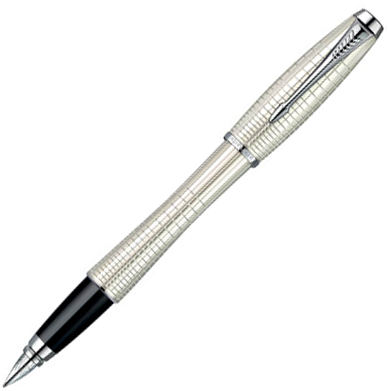 Перьевая ручка Parker Urban Premium Pearl Metal Chiselled, цвет - жемчужный металлик, перо - нержавеющая сталь. Корпус и колпачок - латунь, лаковое покрытие, клип - сталь/хром. Отделка - хром, лаковое покрытие, гравировка.