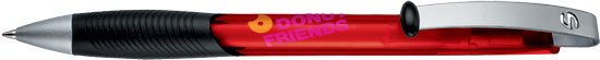 Шариковая авторучка с прозрачным корпусом и эргономичной мягкой зоной грифа. Массивный матово-хромированный металлический наконечник и клип. Качественный суперобъёмный стержень с синей или чёрной пастой.