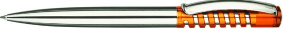 Шариковая авторучка с оригинальной механикой нажимного колпачка. Верхняя часть ручки из блестящего прозрачного пластика. Массивный металлический корпус и широкий металлический клип. Металлизированная внутренняя деталь под спиралью и кнопка на колпачк
