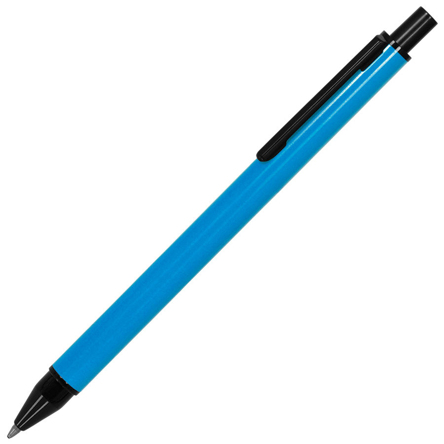 Яркая металлическая ручка простой формы - универсальный носитель рекламного сообщения.