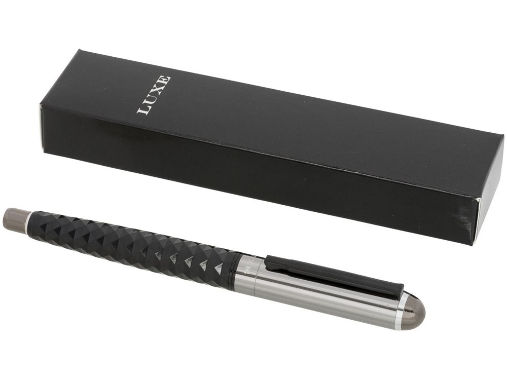 Тактическая ручка-роллер. В этой эксклюзивной ручке-роллере сочетается элегантность и надежность. Корпус дополнен нижней частью из приятного на ощупь материала. В набор входят запасные чернила для ручки-роллера в подарочной коробке LUXE (17 x 3,5 x 2 см). Металл.