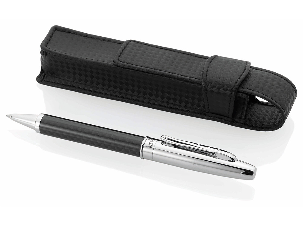 Эксклюзивная металлическая шариковая ручка с поворотным механизмом и нижней частью из углеродного волокна.