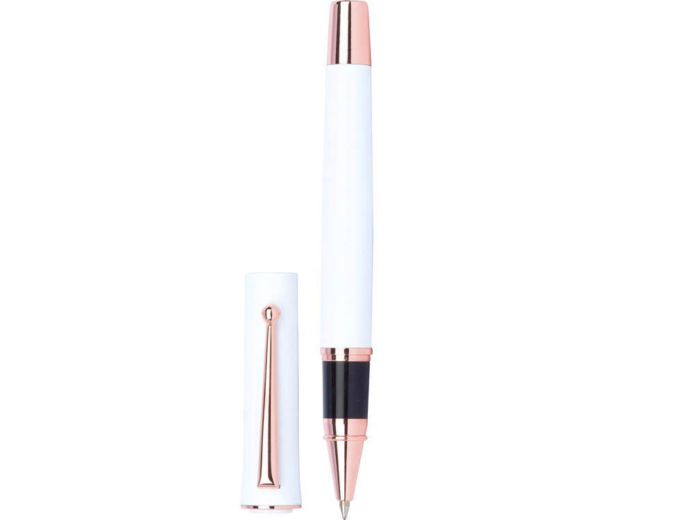 Стильная ручка-роллер имеет тонкую линию письма, что будет оценено по достоинству. Яркие металлические детали ручки привлекают внимание, а на белый корпус можно нанести любой логотип, превратив ручку в элемент корпоративного стиля.