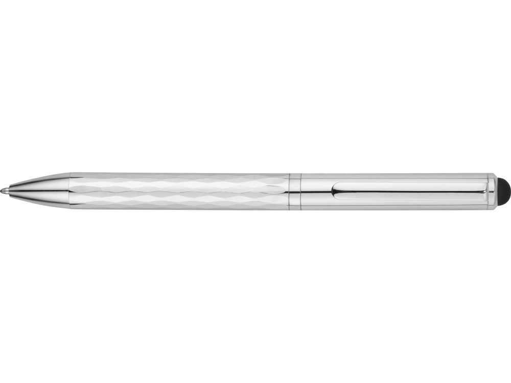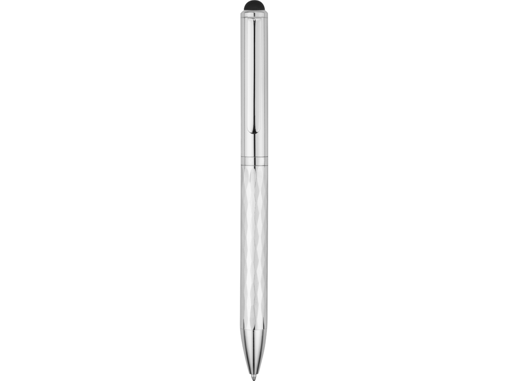 Эксклюзивная шариковая ручка-стилус с блестящим корпусом и нижней частью 3D замысловатой геометрической формы.