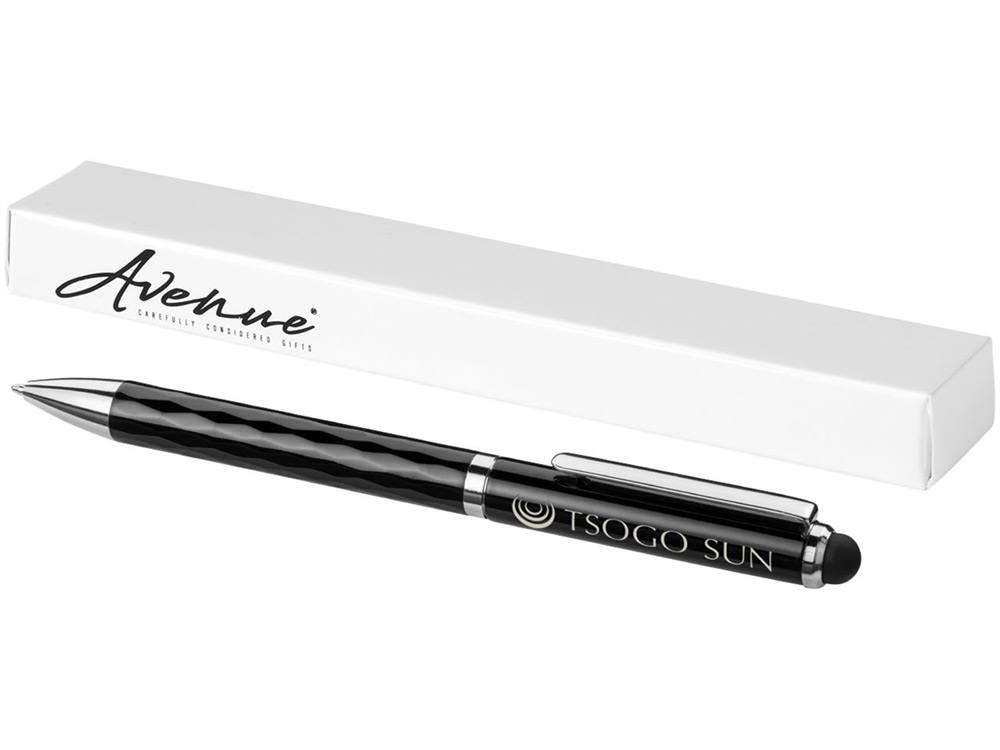 Эксклюзивная шариковая ручка-стилус с блестящим корпусом и нижней частью 3D замысловатой геометрической формы.