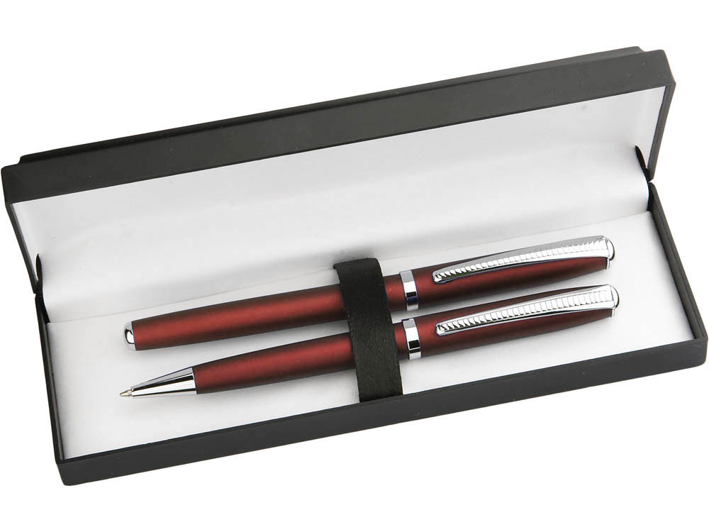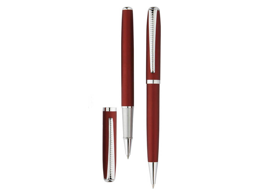 Стильный подарочный набор в фирменной коробке. Шариковая ручка с поворотным механизмом и ручка роллер со съемным колпачком. Единый дизайн, оригинальное оформление. На металлический корпус обеих ручек можно нанести индивидуальную гравировку.
