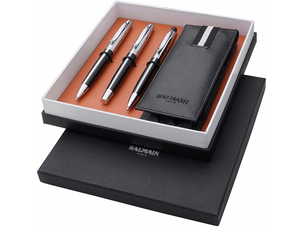 Набор пишущих инструментов "Auvergne" с чехлом в подарочной коробке: ручка шариковая, роллер, механический карандаш, черные чернила