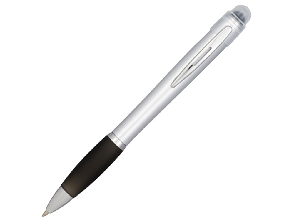 Nash серебряная ручка с цветным элементом. Пластик, металлический клип, светодиод.