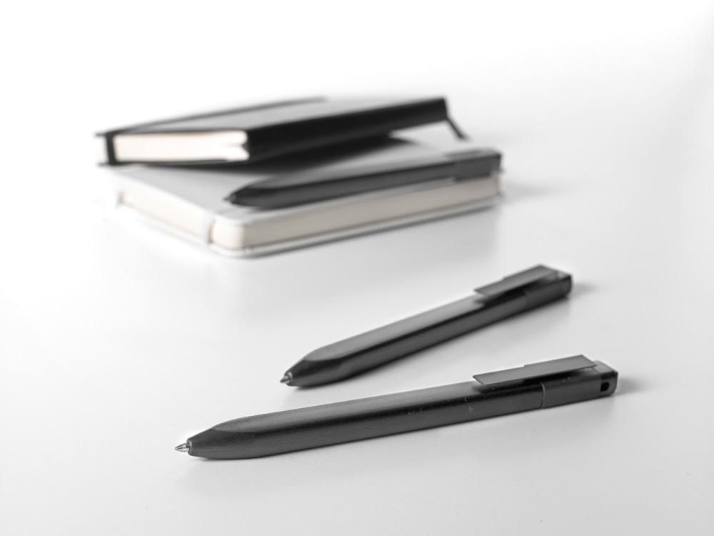 Идеально сочетается с блокнотом Moleskine, специально предназначена для крепления на стороне классической черной обложки. Характеристики: черные чернила; шариковый стержень; сменный стержень; выдвижной наконечник; матовое черное покрытие АБС; черный прорезиненный стальной зажим (зарегистрированный дизайн) с выгравированным логотипом;16 наклеек для оформления ручки.