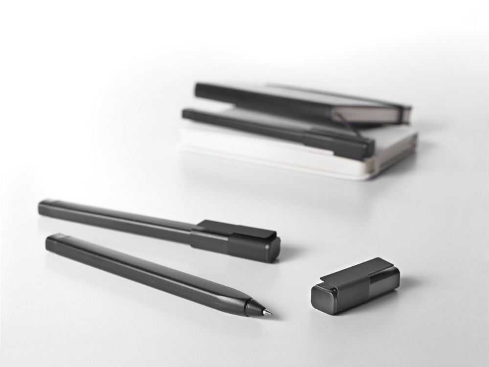 Идеально сочетается с блокнотом Moleskine, специально предназначена для крепления на стороне классической черной обложки. Характеристики: черные чернила; долговечный гелевый стержень для ручки роллера Plus;сменный стержень; пружинный механизм; матовое черное покрытие АБС; серый полированный стальной зажим (зарегистрированный дизайн) с выгравированным логотипом;24 наклейки для оформления ручки. СОВМЕСТИМА ТОЛЬКО С ГЕЛЕВЫМ СТЕРЖНЕМ PLUS.