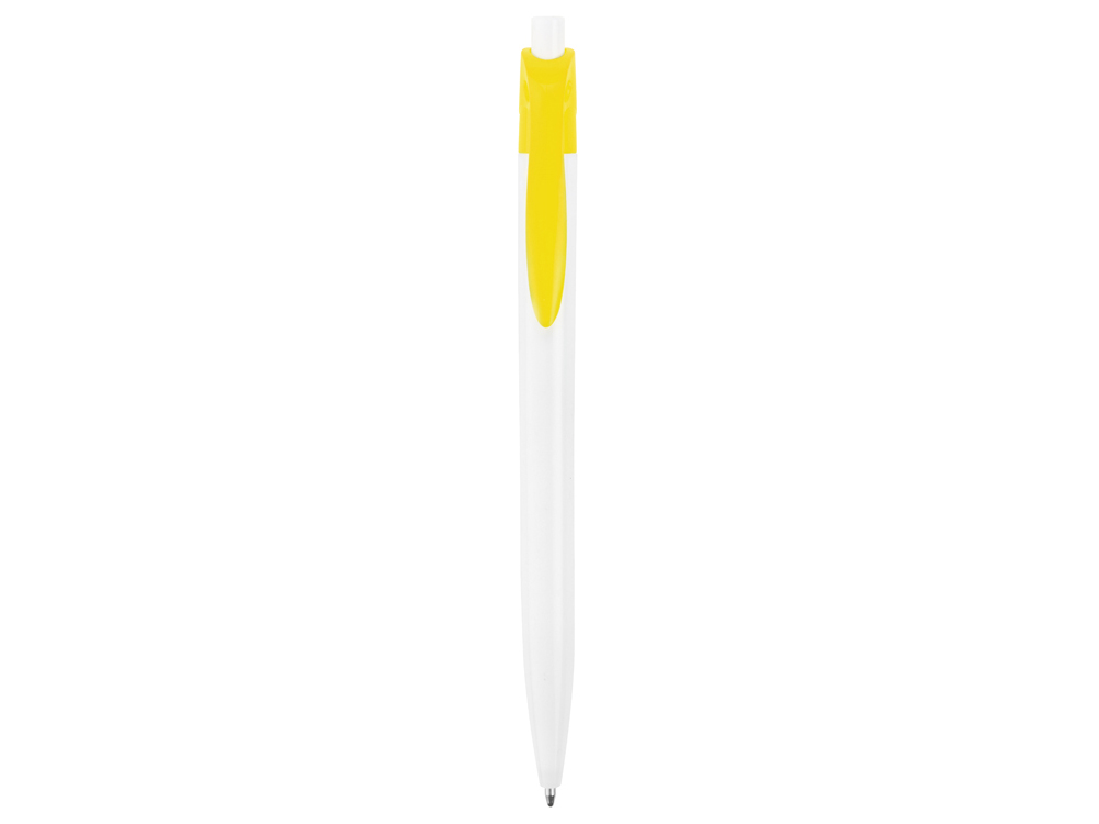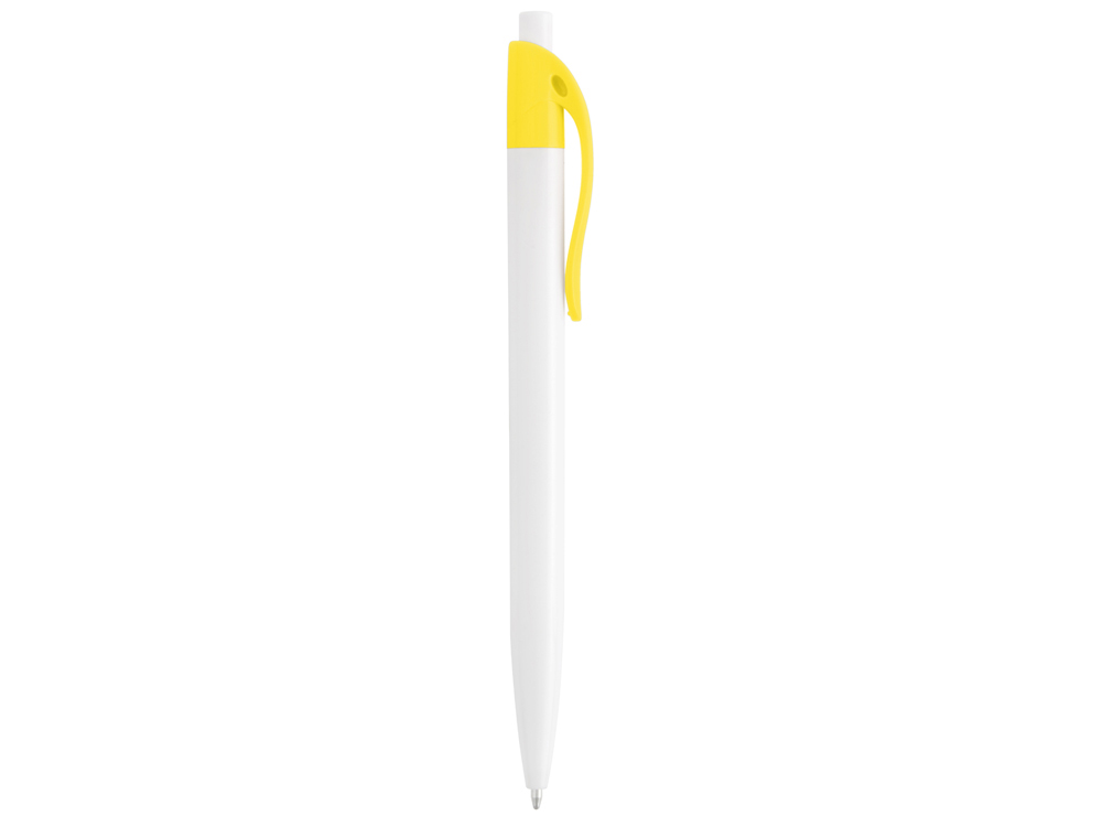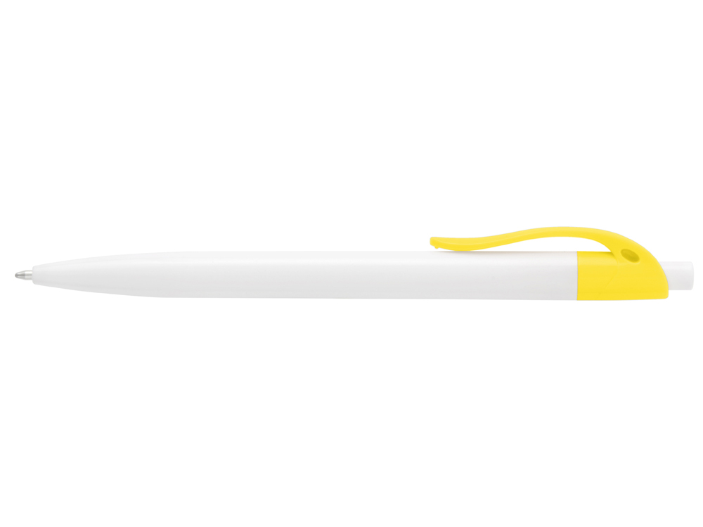 Стильная пластиковая ручка с ярким цветным клипом и белым корпусом отлично подойдет для нанесения логотипов и рекламной информации. Нажимной механизм. Доступно 8 расцветок клипа.