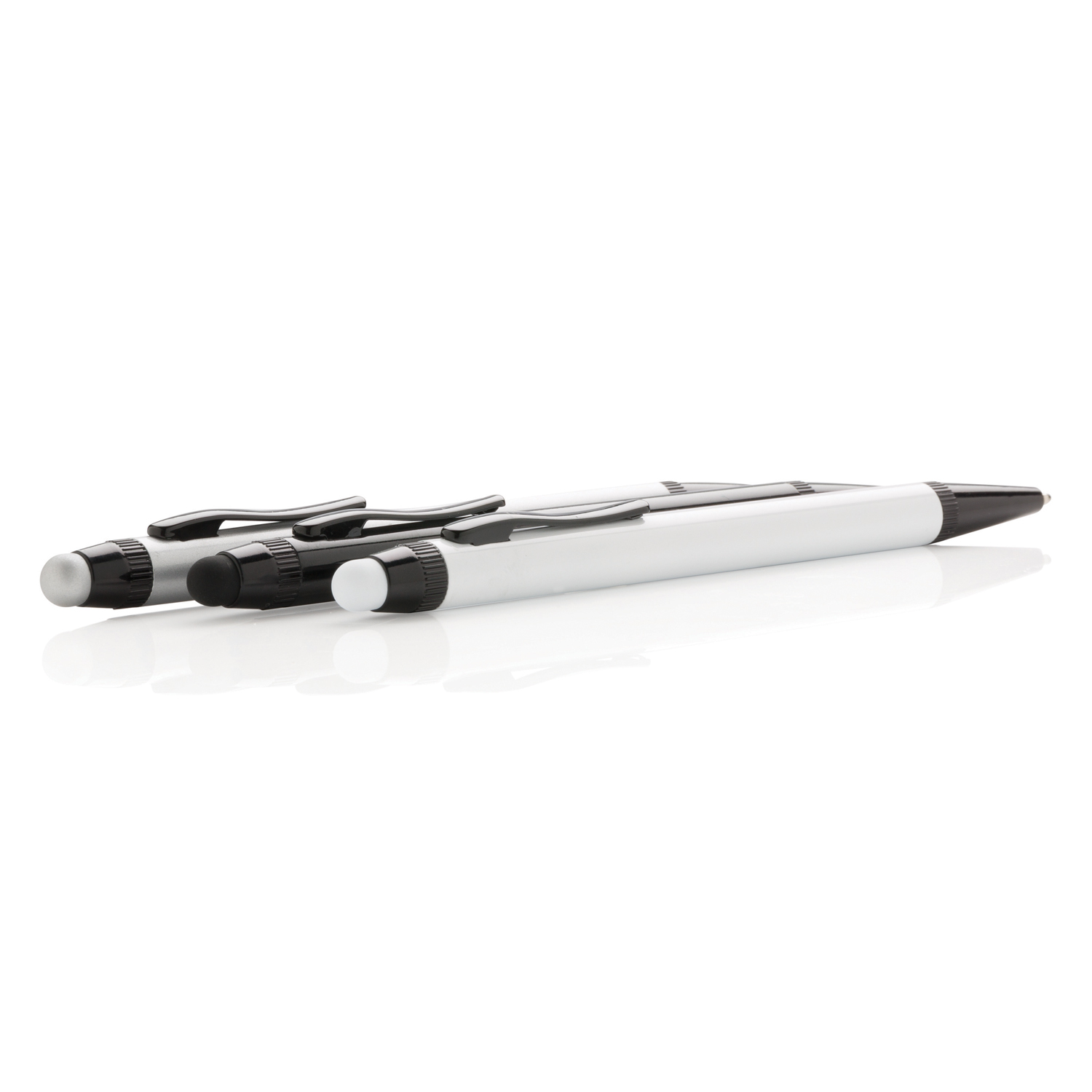 Алюминиевая ручка-стилус. В ручке установлен синий шариковый стержень превосходного немецкого качества, что делает письмо мягким, а использование ручки невероятно комфортным. Одного стержня хватит, чтобы прочертить линию длиной 1200 м.