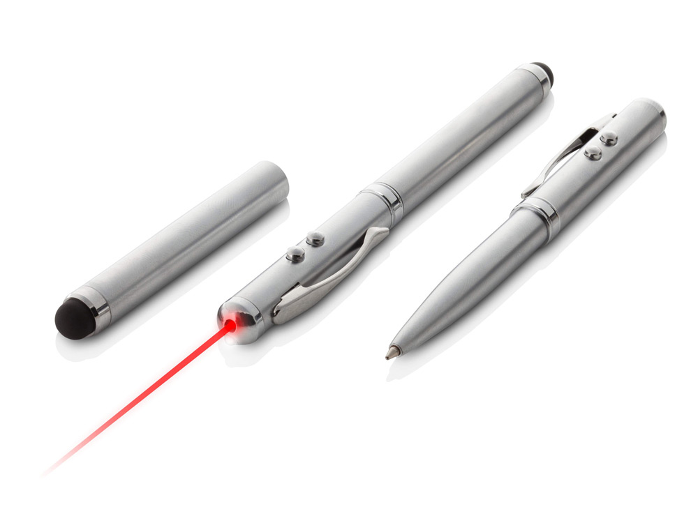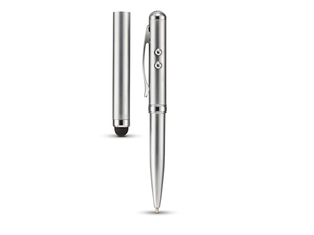 Многофункциональный девайс "Pointer"– незаменимая вещь при проведении презентаций. Это 3 в 1: лазерная указка, стилус и шариковая ручка. На белый пластиковый корпус возможно нанесение персонализации.