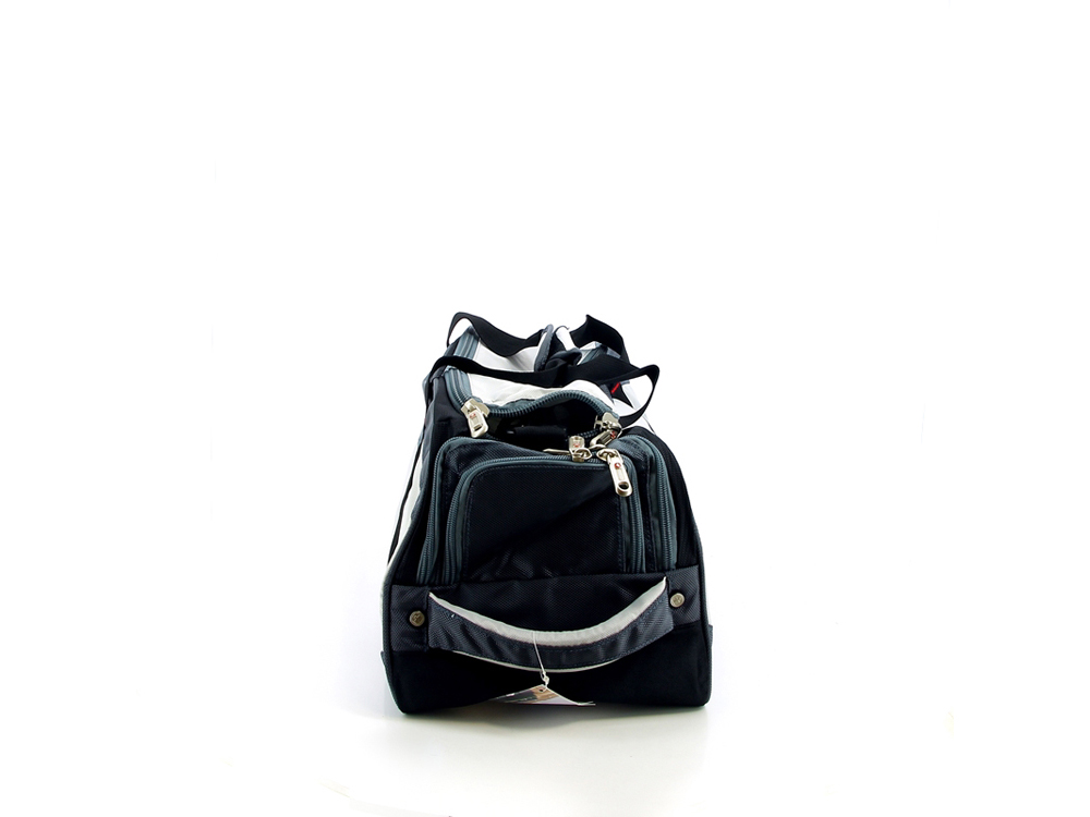 Сумка включает в себя: -большое отделение с двусторонней молнией, внутри которого расположен сетчатый карман для мелких предметов, -внешний карман на молнии для мелких предметов, -с торца расположено отделение для обуви с дополнительной ручкой для переноса, -защитные пластиковые ножки на дне сумки, -для комфортной транспортировки имеются эргономичные ручки с фиксатором на липучке и регулируемый плечевой ремень с мягким подплечником.