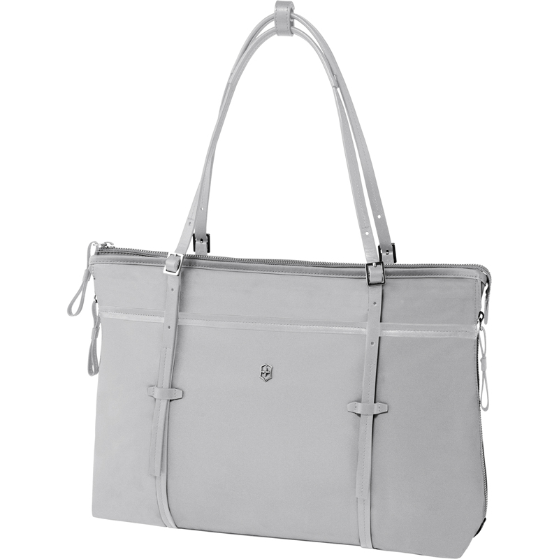 Сумка VICTORINOX Victoria Charisma 15,6'', серебристая, основной материал - нейлон, ручки из кожи, внутренние карманы из микрозамши, 43x15x33 см, 22 л