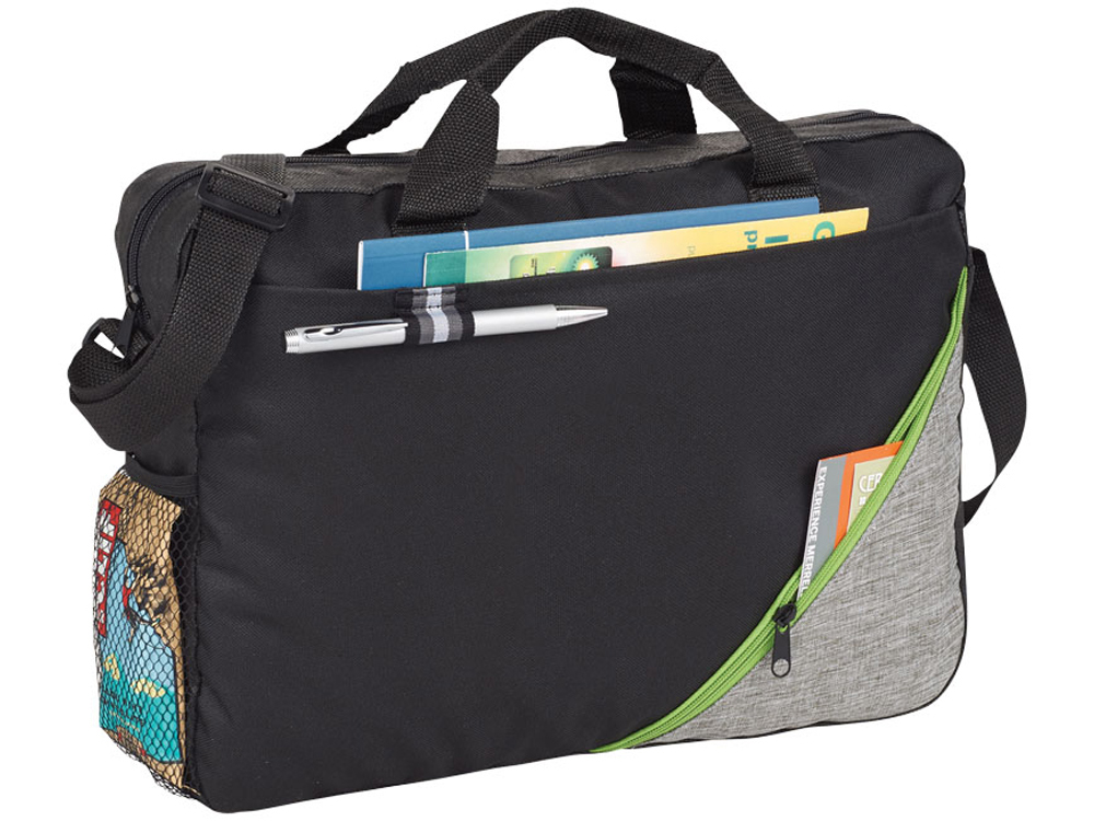 Сумка Corner. Сумка для конференций с основным отделением на молнии и кармашком для легкого доступа. Боковой карман на молнии с петелькой для ручки. Карман из сетки сбоку для бутылки. Регулируемый ремень на плечо и две ручки. 600d полиэстер с акцентами из полипропилена 80 г.