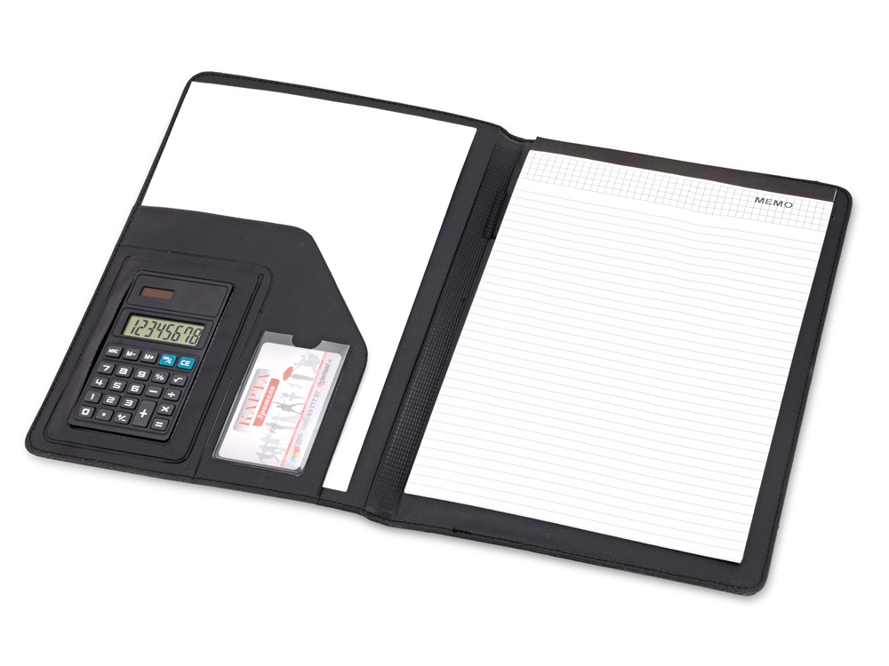 Папка для документов с блокнотом и калькулятором «Триест» прекрасно подходит для повседневного использования, может быть отличным промо-сувениром во время конференций и презентаций. В папку входят калькулятор, блок для записей. Есть отделения для хранения ручки и визитки, а также большое отделение для документов.