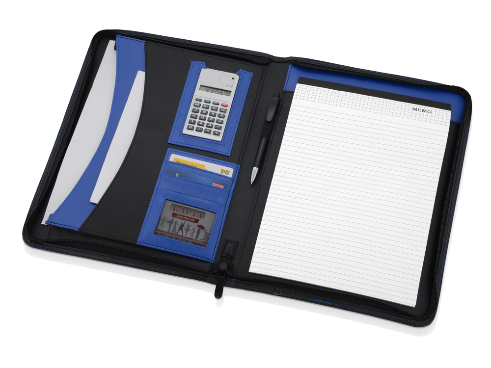 Стильная папка для документов Gabin – прекрасный подарок для делового человека. Папка формата А4 со сменным блокнотом и встроенным калькулятором. Сделана из искусственной кожи, особенно стильный вид ей придает цветная отделка внутри и снаружи. На металлический шильд можно нанести гравировку.