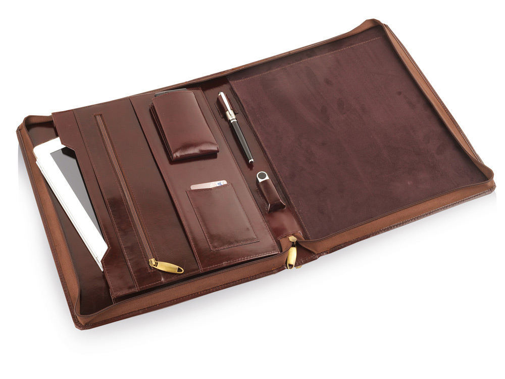 Строгая папка-портфель Philip будет отличным имиджевым подарком деловому партнеру. Сумка выполнена из натуральной кожи и отлично вписывается в классику делового стиля. Внутри все организовано очень современно: уплотненное отделение для ноутбука, карман для планшета, удобная организационная панель для флеш-карт и мобильного телефона. Такой подарок никого не оставит равнодушным.