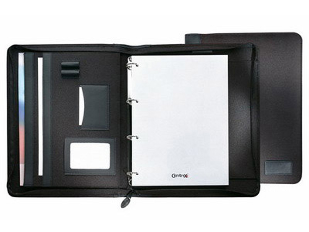 Эксклюзивная папка с застежкой-молнией, папкой-регистратором, держателем для ручки, карманами для документов и блокнотом с 20 страницами линованной бумаги. Принадлежности не включены.