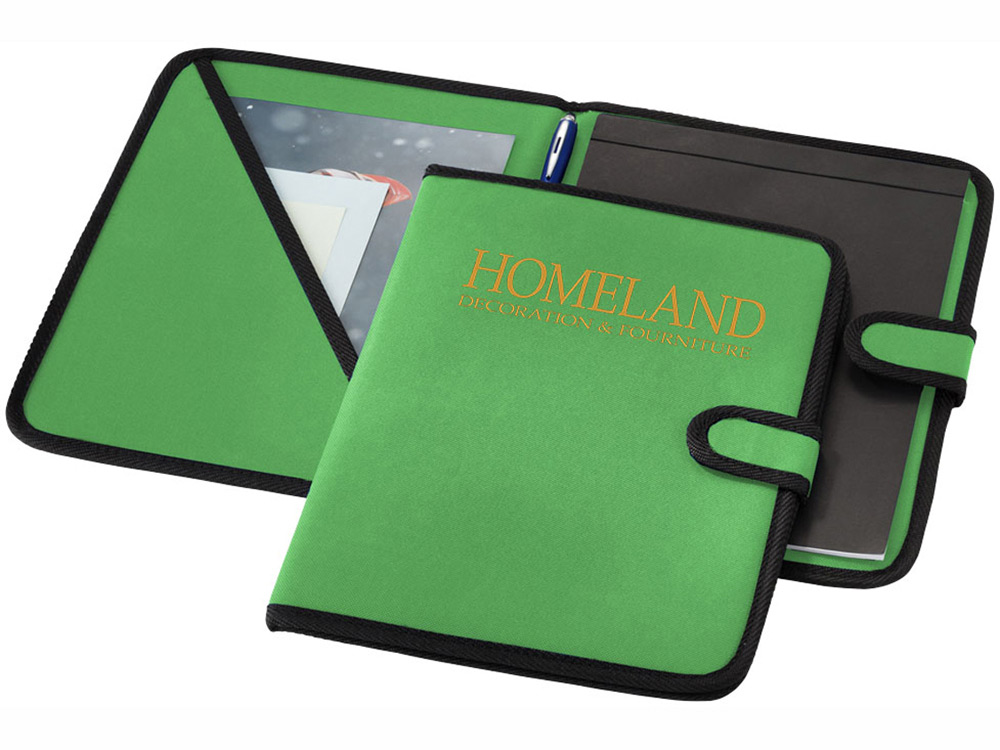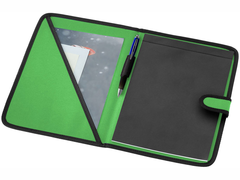 Папка на липучке с держателем для ручки, карманом для документов и блокнотом с 20 страницами линованной бумаги. Ручка и принадлежности не включены.