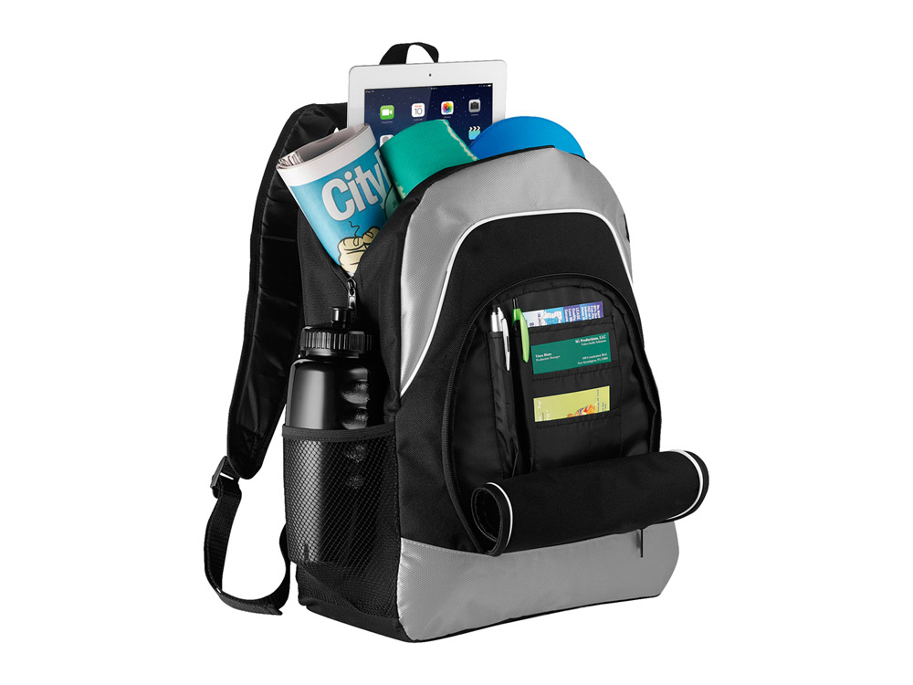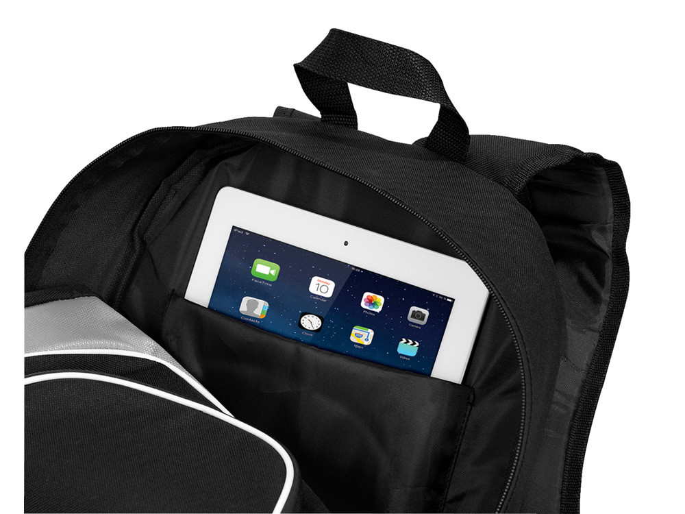 Рюкзак для планшета "Branson". Основное отделение на молнии с карманом с мягкой подкладкой для iPads, планшетов и eReader. Передний карман на молнии с панелью-органайзером. Боковой сетчатый карман. Спинка с мягкой подкладкой. Регулируемые плечевые ремни с мягкими подкладками. Усиленная ручка. Планшет не включен.