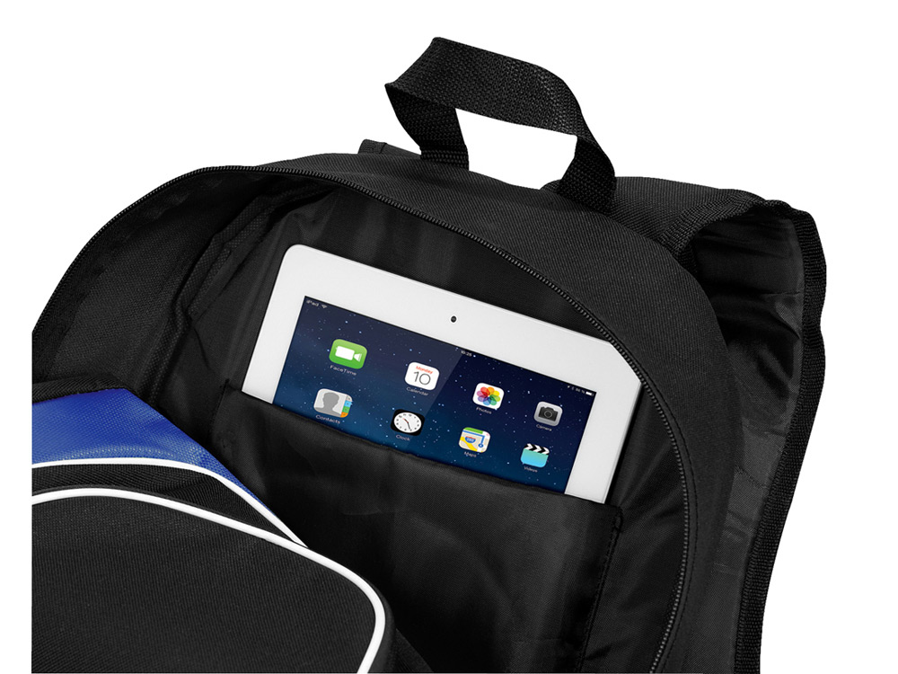 Рюкзак для планшета "Branson". Основное отделение на молнии с карманом с мягкой подкладкой для iPads, планшетов и eReader. Передний карман на молнии с панелью-органайзером. Боковой сетчатый карман. Спинка с мягкой подкладкой. Регулируемые плечевые ремни с мягкими подкладками. Усиленная ручка. Планшет не включен.