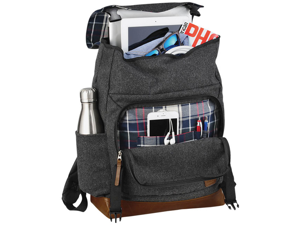 Рюкзак Campster 15". Часть серии Campster от Field & Co.®. Вдохновение было заимствовано у образа ретро скаута и дополнено современными нуждами. Стильный рюкзак выполнен из полиэстера и шерсти с виниловыми акцентами. В рюкзак можно поместить ноутбук до 15". Внутренняя организационная панель и карман для быстрого доступа к вещам. 60% полиэстер, 40% шерсть.