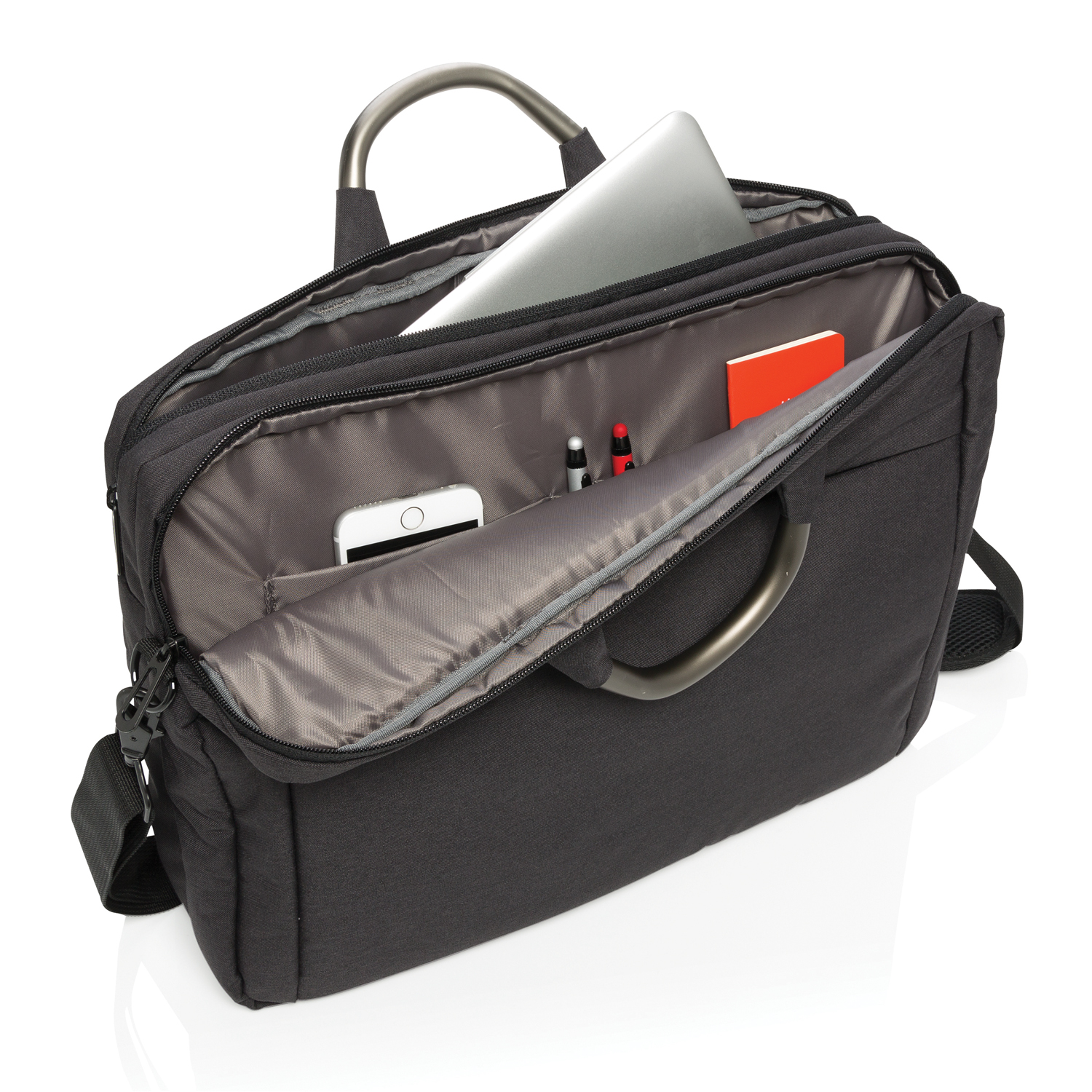 Эргономичная сумка Business для ноутбука и планшета изготовлена из полиэстера. Два отделения с мягкой подкладкой: заднее отделение для ноутбука или планшета (не более 15,6 дюймов) и переднее отделение для книг, наушников и т.д.