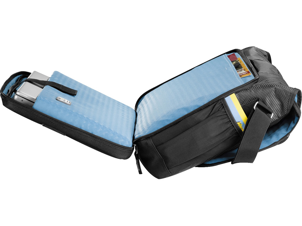 Сумка для ноутбука 17", удобная для прохождения досмотра. Заднее отделение на молнии подходит для ноутбуков 17" и включает отдельный карман на липучке. В открытом основном отделении есть отдельный карман на молнии для iPad с подкладкой из материала Nylex. Защитный верх с передним карманом на молнии, включающий органайзер и отверстие для наушников. Удобный органайзер и дополнительный карман на молнии под откидным верхом. Два боковых сетчатых кармана. Уникальная утопленная ручка и регулируемый плечевой ремень с мягкой нескользящей подкладкой. Задняя часть продевается через ручки тележки.