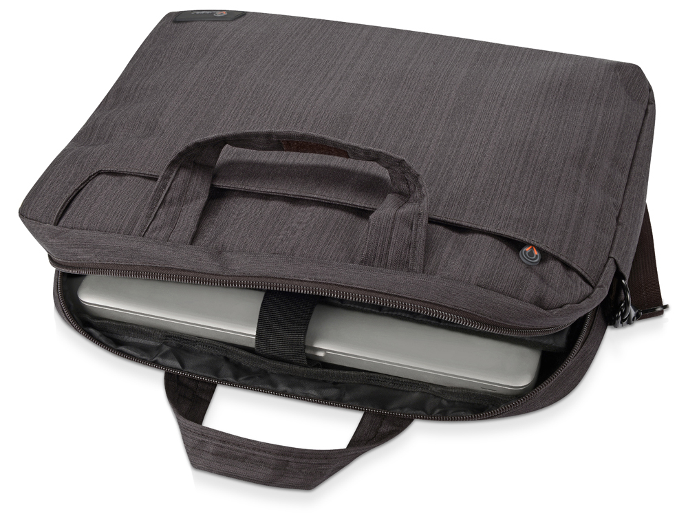 Сумка для ноутбука «Элдон» с диагональю 17 дюймов отлично подойдет как к деловому стилю, так и к стилю casual. Благодаря ремню с регулируемой длиной, сумку удобно носить на плече, впрочем, этот ремень можно отстегнуть, чтобы пользоваться короткими ручками. На передней части сумки расположен карман на молнии, внутри – два отделения: для ноутбука и других вещей. Сзади предусмотрено крепление на выдвижную ручку чемодана. Сумка для ноутбука «Элдон» – идеальный аксессуар для людей, которые живут в темпе большого города.