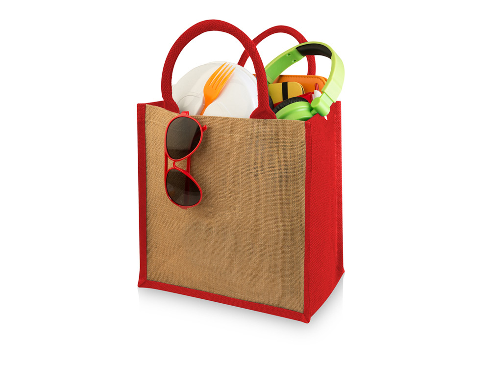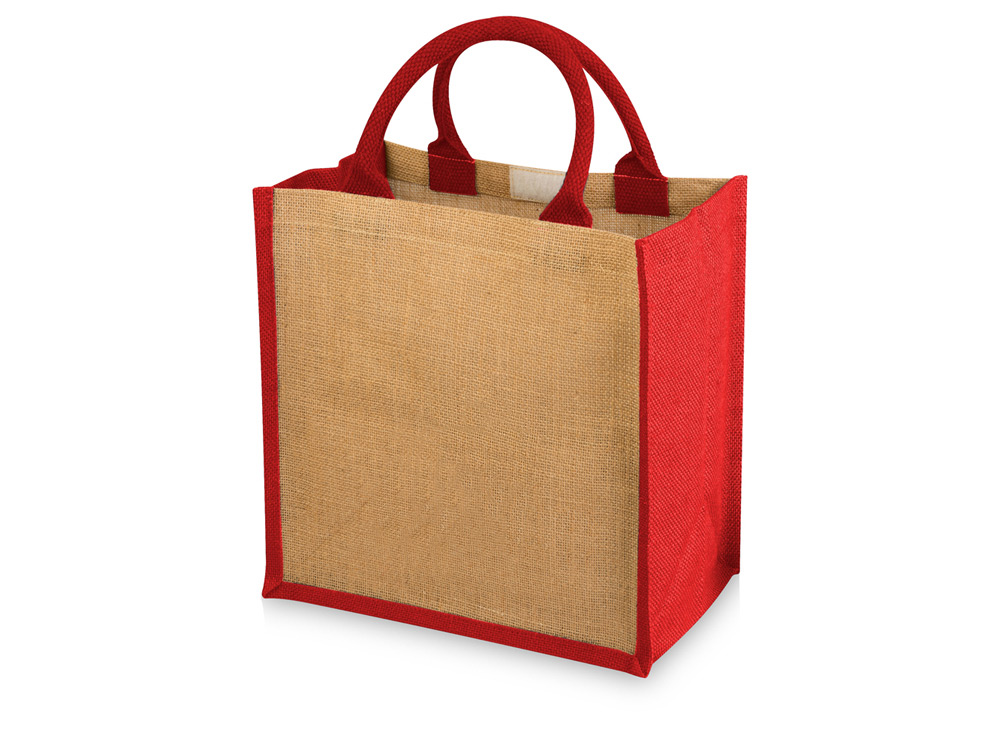 Джутовая сумка с ламинированным открытым основным отделением и вставкой.