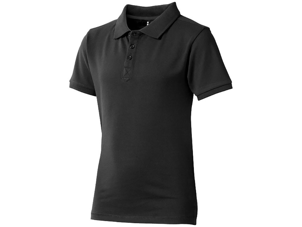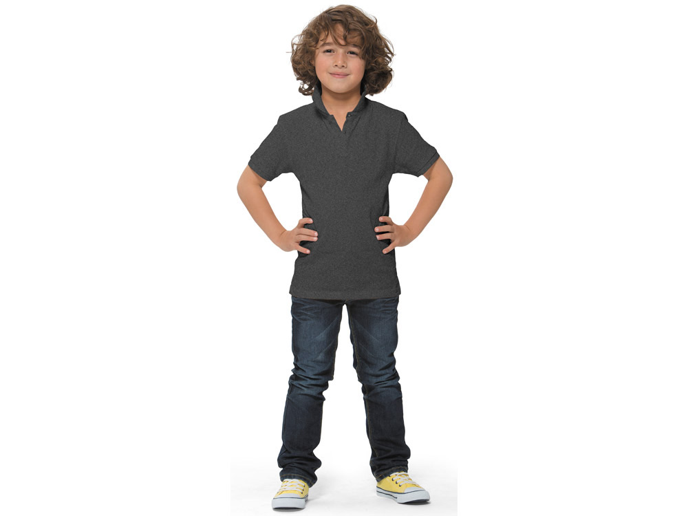 Детская рубашка поло с короткими рукавами Calgary. Стандартный покрой. Мужская и детская модели на двух пуговицах. Опущенный плечевой шов, цепная строчка. Боковые разрезы с атласной лентой внутри. Детали со швами Pick-Stitch. Принт лого сзади в тон изделия. Атласная лента внутри горловины. Полумесяц. Резинка 1х1 на воротнике и манжетах. Трикотажное пике, 100% хлопок. 200 г/м².