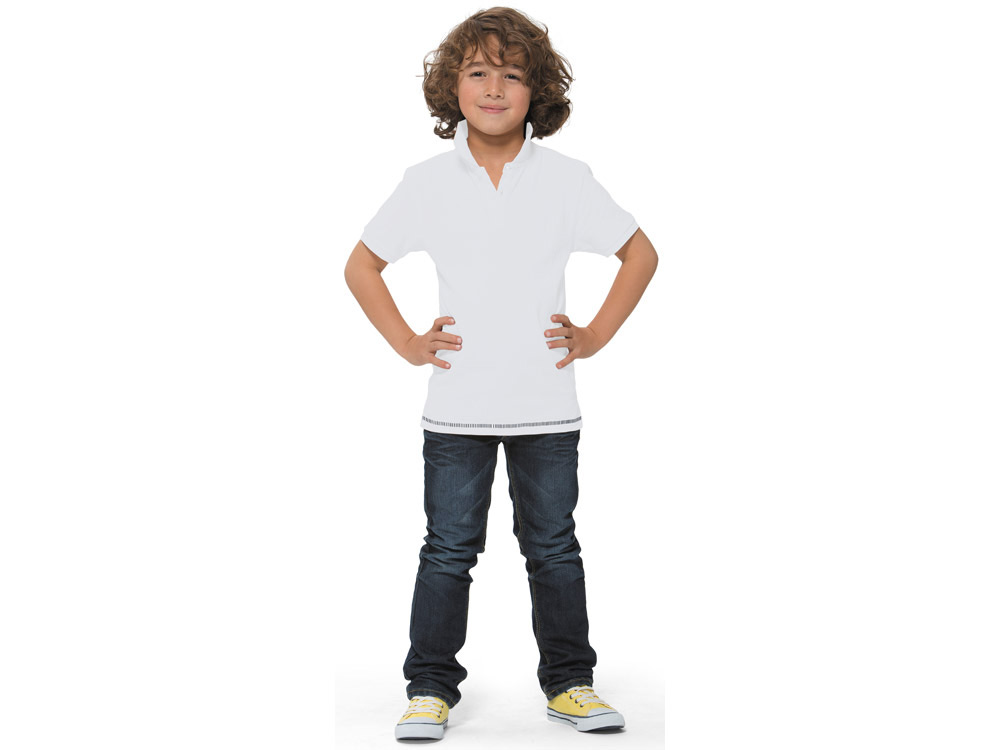 Детская рубашка поло с короткими рукавами Calgary. Стандартный покрой. Мужская и детская модели на двух пуговицах. Опущенный плечевой шов, цепная строчка. Боковые разрезы с атласной лентой внутри. Детали со швами Pick-Stitch. Принт лого сзади в тон изделия. Атласная лента внутри горловины. Полумесяц. Резинка 1х1 на воротнике и манжетах. Трикотажное пике, 100% хлопок. 200 г/м².