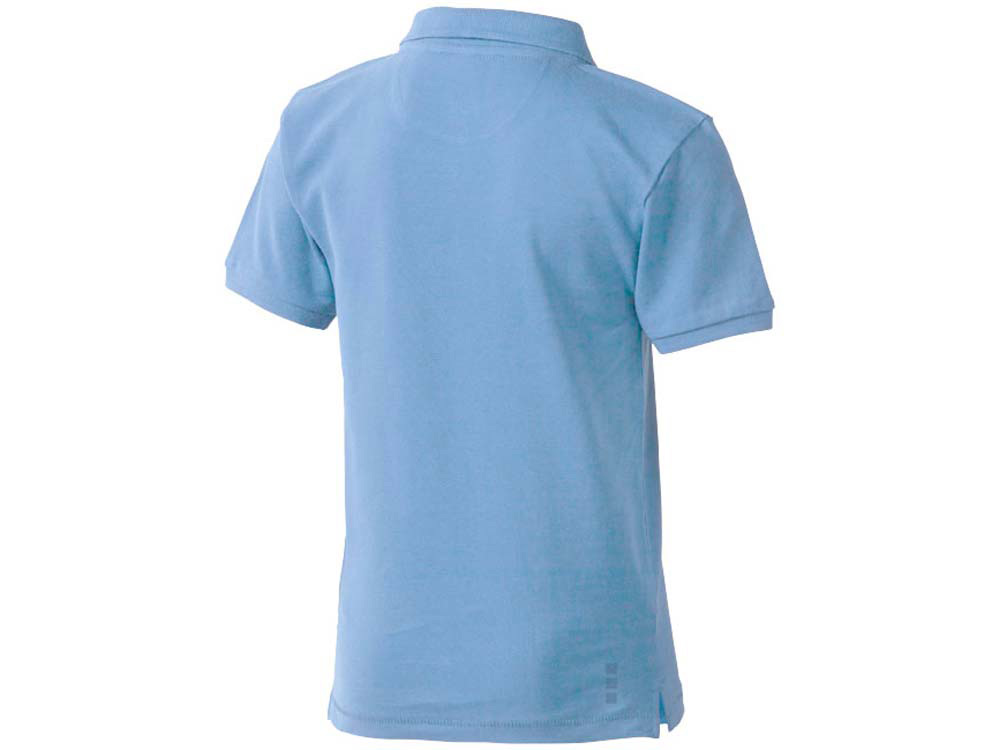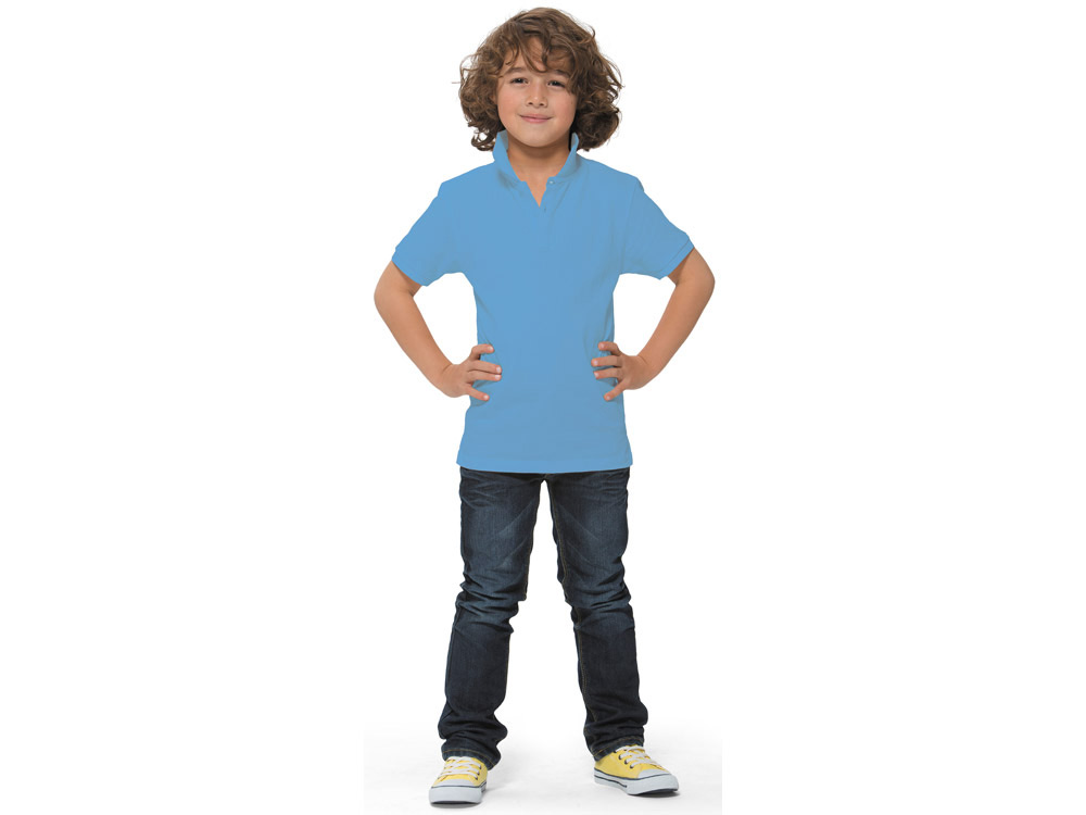 Детская рубашка поло с короткими рукавами Calgary. Стандартный покрой. Мужская и детская модели на двух пуговицах. Опущенный плечевой шов, цепная строчка. Боковые разрезы с атласной лентой внутри. Детали со швами Pick-Stitch. Принт лого сзади в тон изделия. Атласная лента внутри горловины. Полумесяц. Резинка 1х1 на воротнике и манжетах. Трикотажное пике, 100% хлопок. 200 г/м².