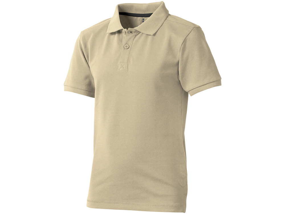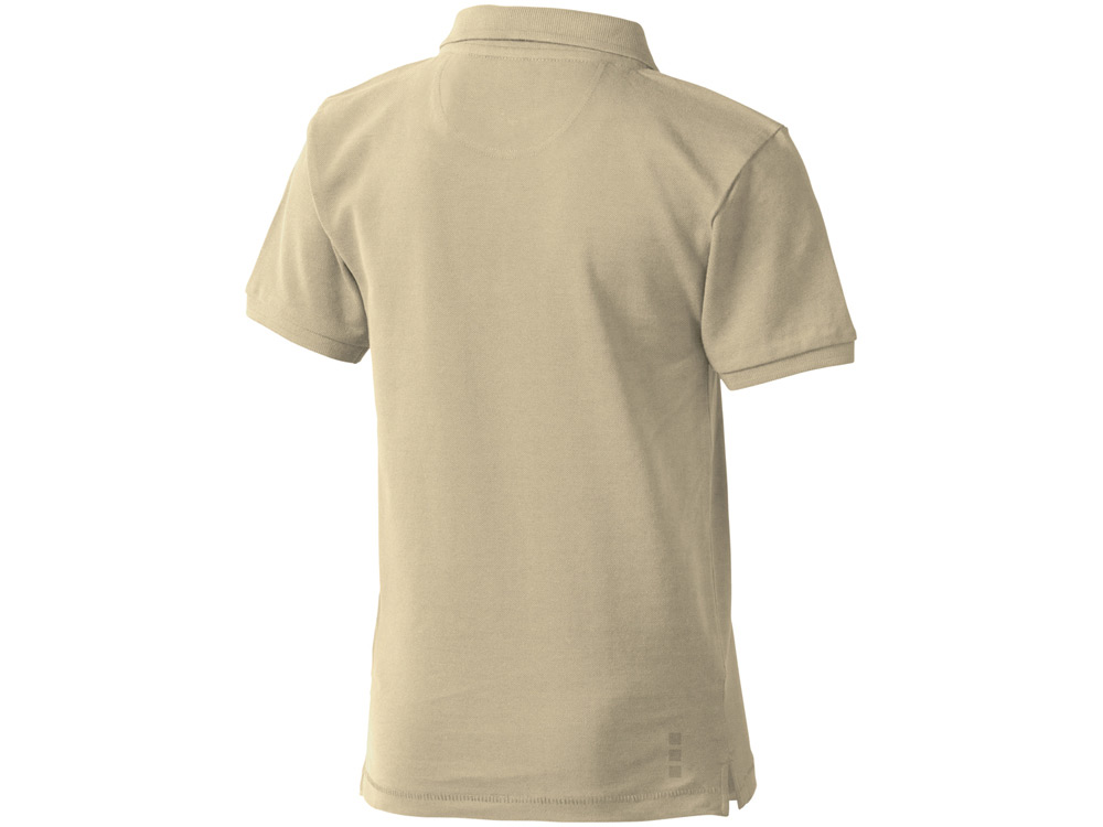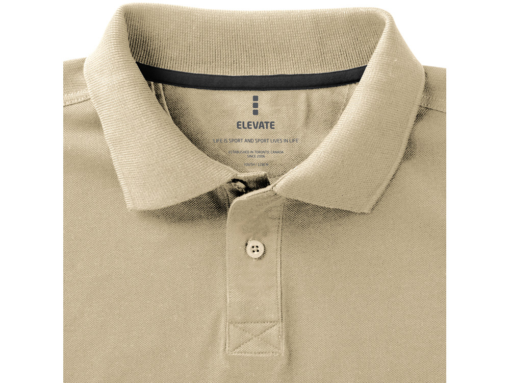 Детская рубашка поло с короткими рукавами Calgary. Стандартный покрой. Мужская и детская модели на двух пуговицах. Опущенный плечевой шов, цепная строчка. Боковые разрезы с атласной лентой внутри. Детали со швами Pick-Stitch. Принт лого сзади в тон изделия. Атласная лента внутри горловины. Полумесяц. Резинка 1х1 на воротнике и манжетах. Трикотажное пике, 100% хлопок. 200 г/м².