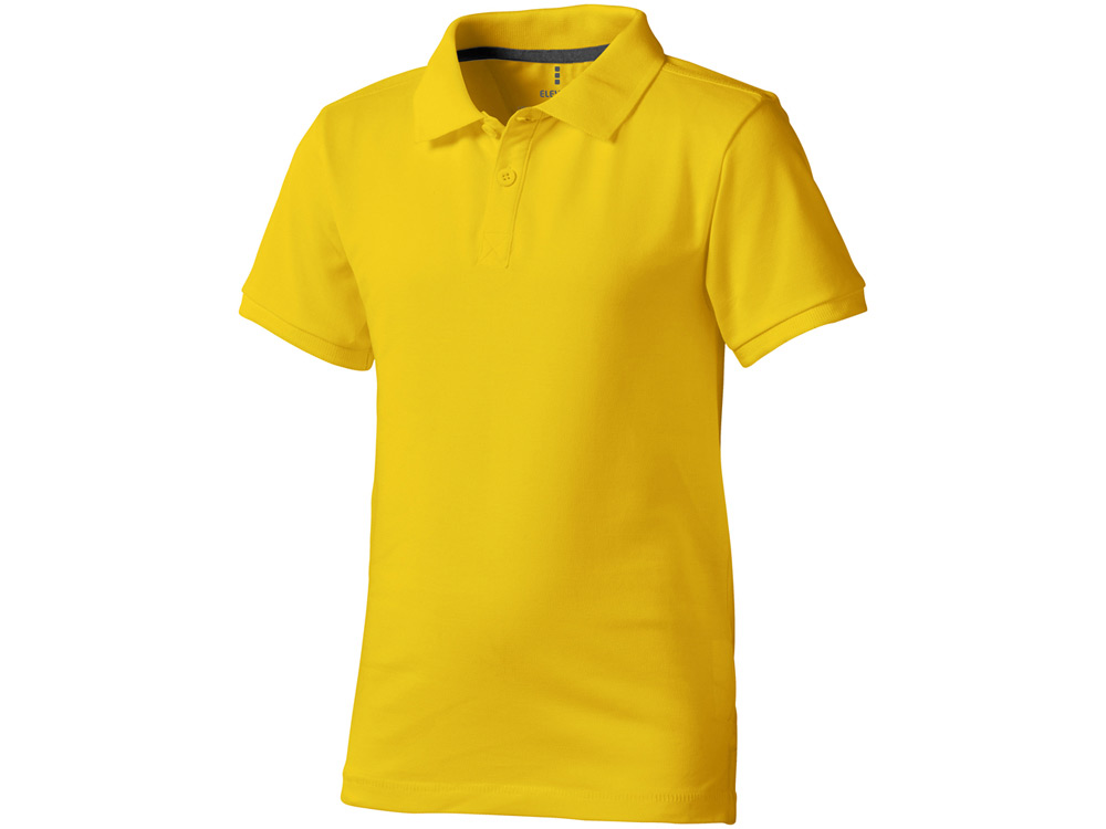 Детская рубашка поло с короткими рукавами Calgary. Стандартный покрой. Мужская и детская модели на двух пуговицах. Опущенный плечевой шов, цепная строчка. Боковые разрезы с атласной лентой внутри. Детали со швами Pick-Stitch. Принт лого сзади в тон изделия. Атласная лента внутри горловины. Полумесяц. Резинка 1х1 на воротнике и манжетах. Трикотажное пике, 100% хлопок. 200 г/м².