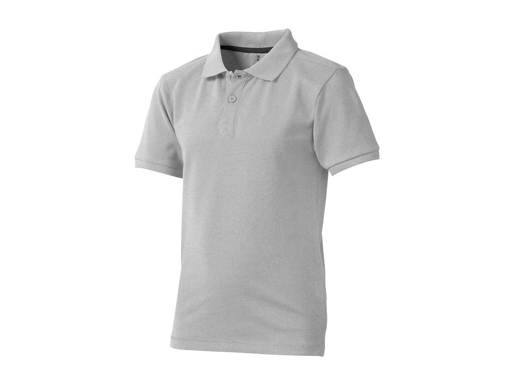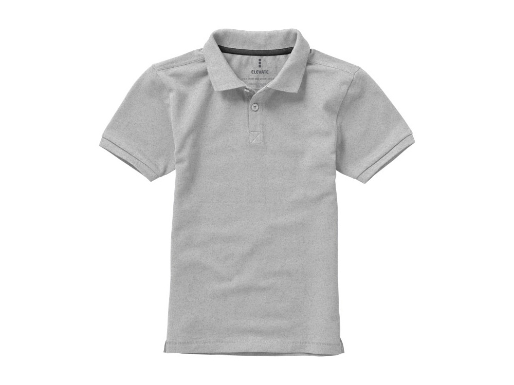 Детская рубашка поло с короткими рукавами Calgary. Стандартный покрой. Мужская и детская модели на двух пуговицах. Опущенный плечевой шов, цепная строчка. Боковые разрезы с атласной лентой внутри. Детали со швами Pick-Stitch. Принт лого сзади в тон изделия. Атласная лента внутри горловины. Полумесяц. Резинка 1х1 на воротнике и манжетах. Трикотажное пике, 90% хлопок, 10% вискоза. 200 г/м².