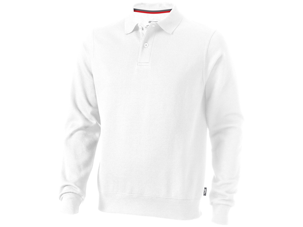 Свитер поло Referee. Стандартный покрой. Резинка 1х1 на манжетах и на поясе. Две пуговицы. Полумесяц. Двухцветная лента внутри на горловине. Лейба-флажок сбоку. Ткань футер, 50% хлопок и 50% полиэстер. 285 г/м².