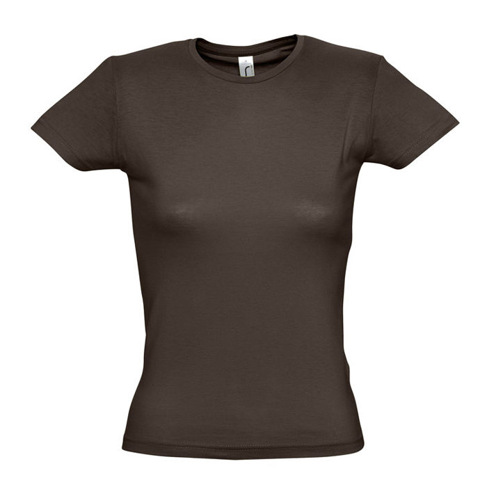 Miss — это базовая, комфортная и недорогая классическая футболка с фасонными (фигурными) швами для более женственной посадки из мягкого хлопкового полотна. Мягкость достигается за счет тонкой, но прочной пряжи, обеспечивающей приятные тактильные ощущения при носке.
