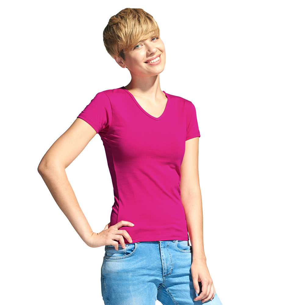 женская футболка-стрейч приталенный силуэт V-вырез с эластичной окантовкой гребенное полотно для долгой носки и качественной печати