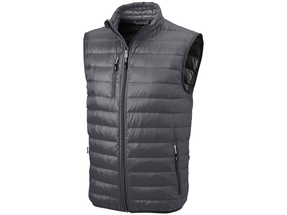 Пуховая жилетка Fairview. Стандартный покрой. Ткань не пропускает пух. Карманы для рук и нагрудный на молнии. Внутренний противоветровой клапан и защита подбородка. Эластичная обшивка внизу и на проймах. Ткань дышащая, ветронепроницаемая и влагоотталкивающая. Отражающий лого сзади. Ремешки на собачку (второй комплект в цвете антрацит). Жилет - версия победителя премии Reddot, куртки Scotia. Ткань из 100% нейлона с матовым и блестящим водоотталкивающим покрытием, 20D. 80% пух и 20% перо.